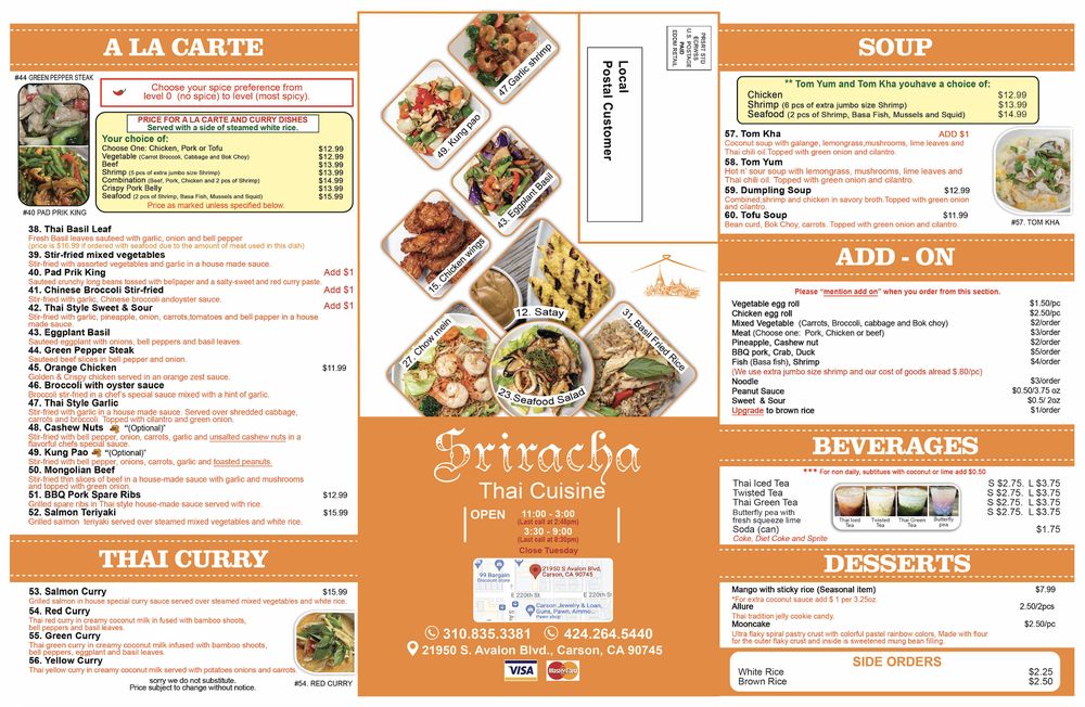 Sriracha Thai Menu (Update 2025)
